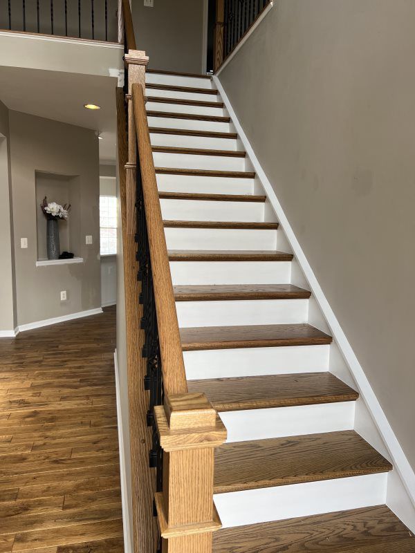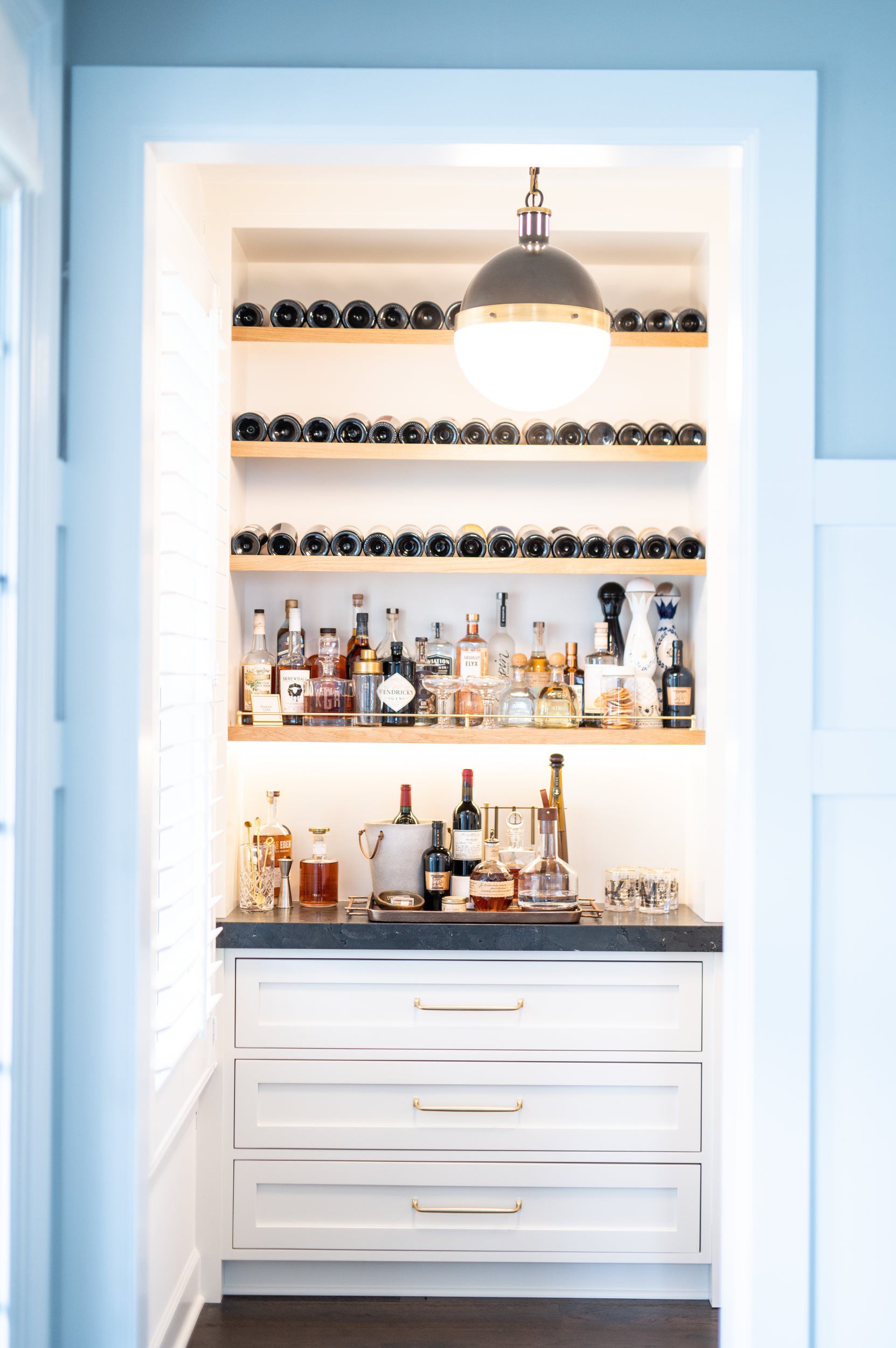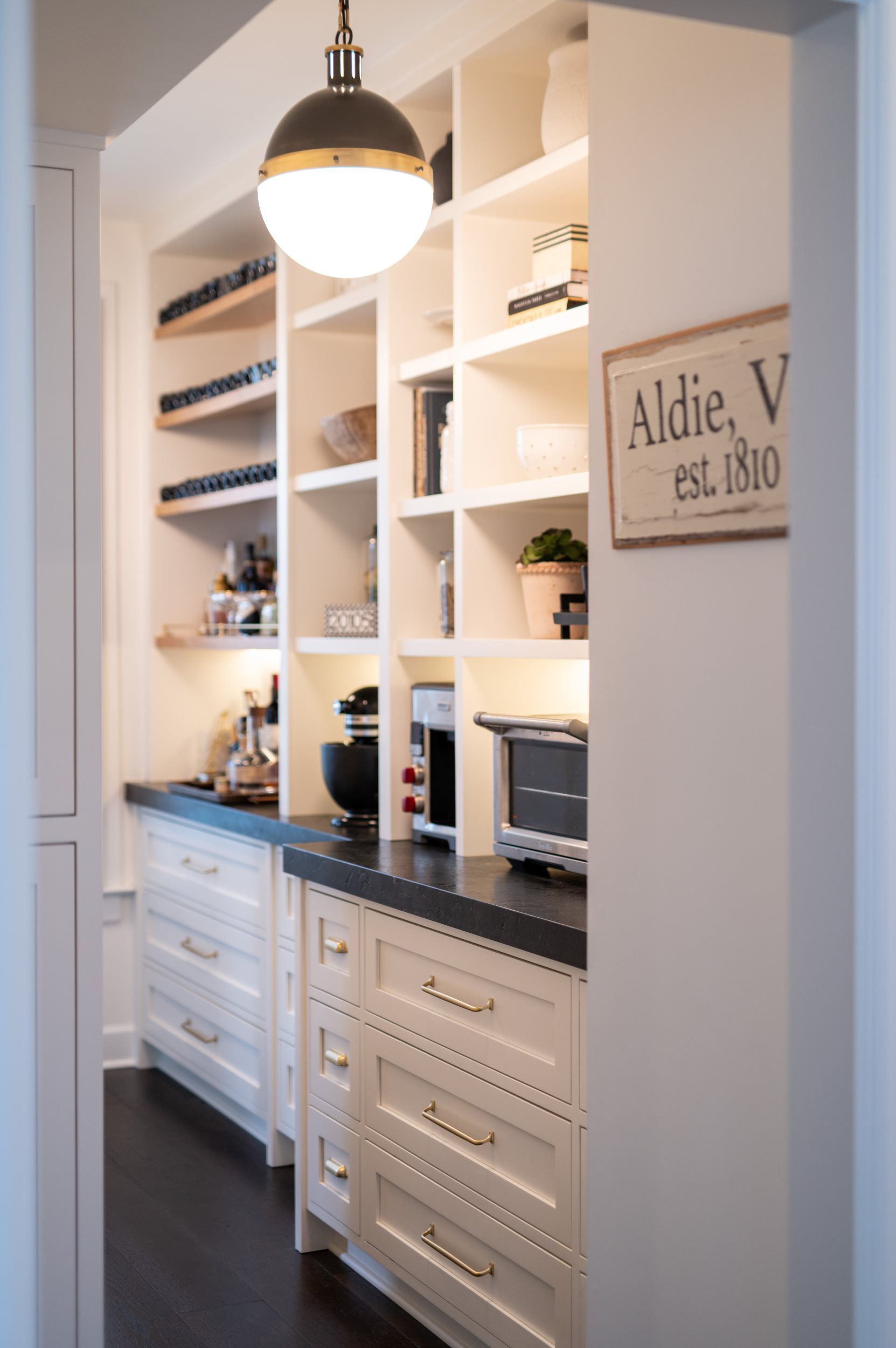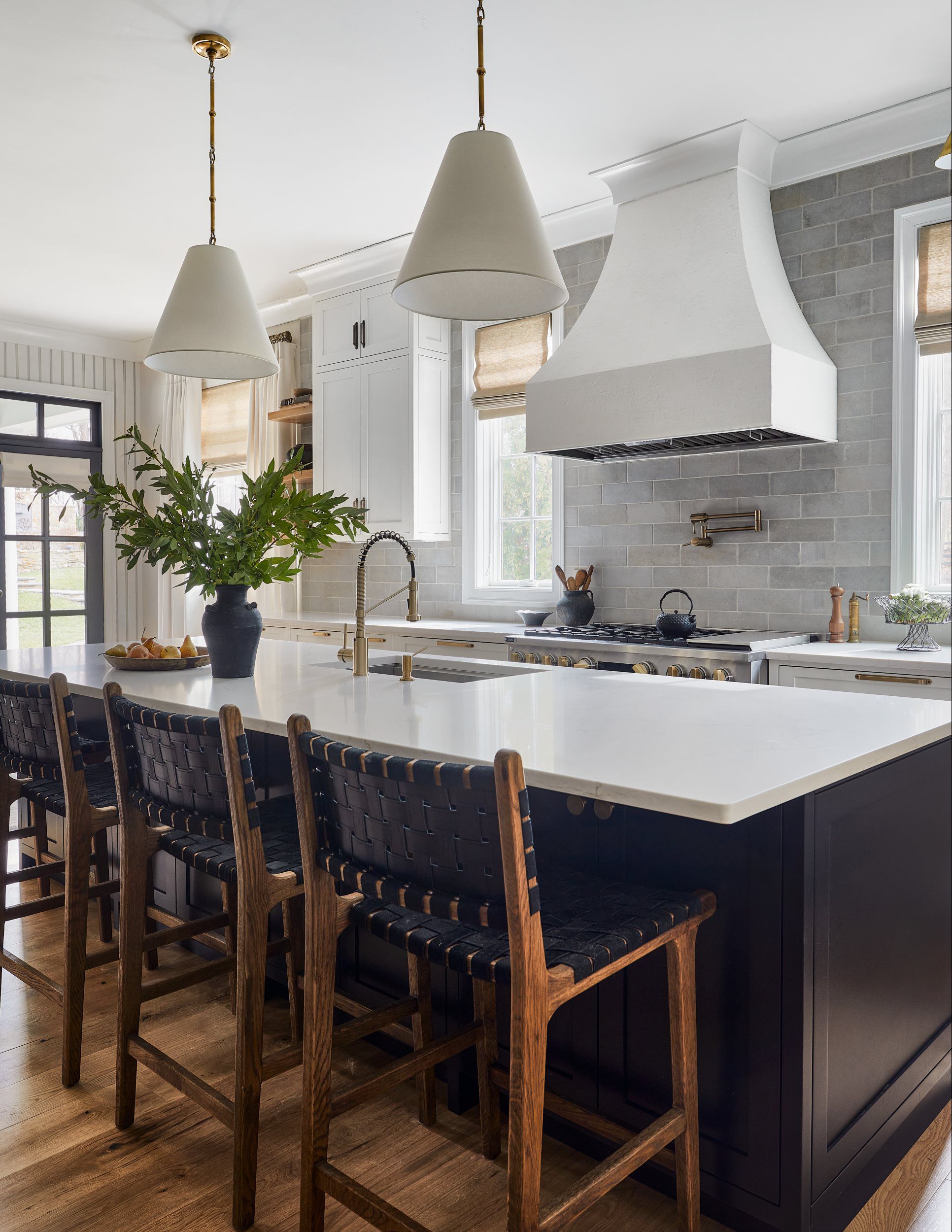 Replaced double wall oven cabinet, expanded the island with custom cabinets, end panels matching existing door profile, lowered island to base cabinet height, converted desk are to dry bar with custom cabinets, replaced countertop with calacatta arabescatto and backsplash with 3x12 White Ice Bright Color tile.